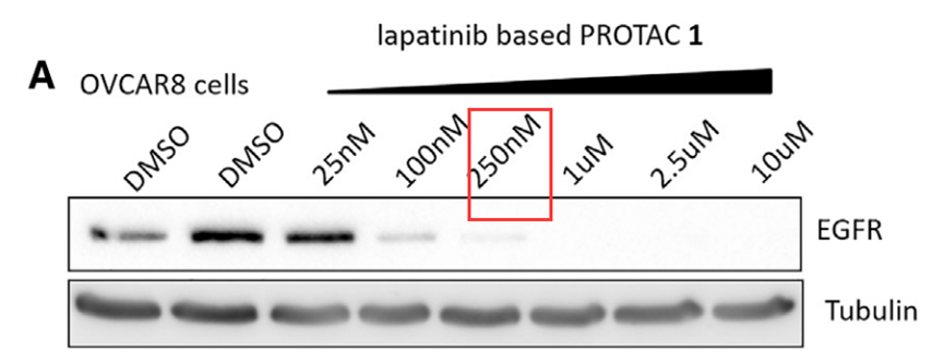 其PROTAC 250 nM 24h 才能把EGFR降解比较干净,时间孵育太久,剂量太高。与在临床PROTAC相比(通常4h及以内,低nM级 降解干净)差别太远。而且,孵育时间非常关键,仅需要获得低nM级别数据,很容易实现,即延长孵育时间。
