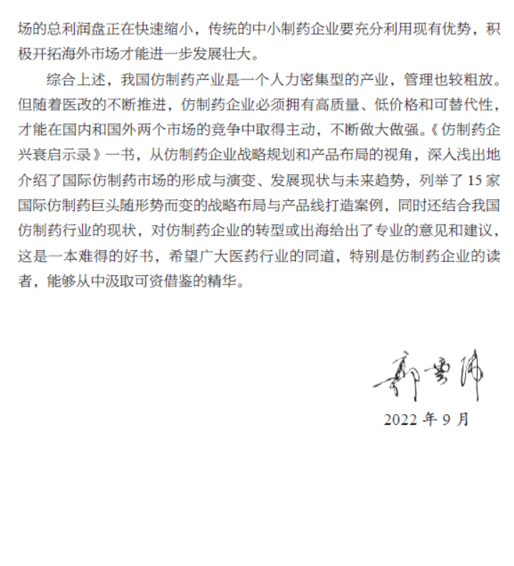 《仿制药企兴衰启示录》已出版,欢迎订阅